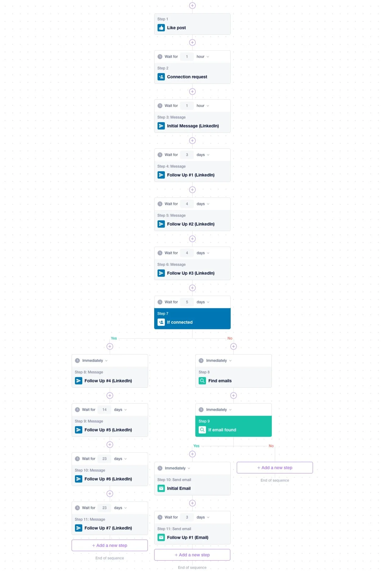 After the initial message has been sent, we wait a few days then start sending a sequence of follow ups messages.